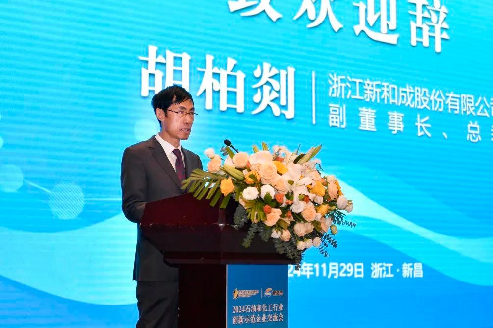 公司副董事长、总裁胡柏剡老师在致辞中对远道而来的各位嘉宾表示了热烈的欢迎,介绍了公司业务发展和创新概况,感谢和赞扬石化联合会为石化行业搭建的高规格、高水平交流平台所发挥的重要作用。他热忱希望,能与企业代表、专家教授建立更加紧密的联系,共同探讨合作机会,共享资源、共担风险、共谋发展。