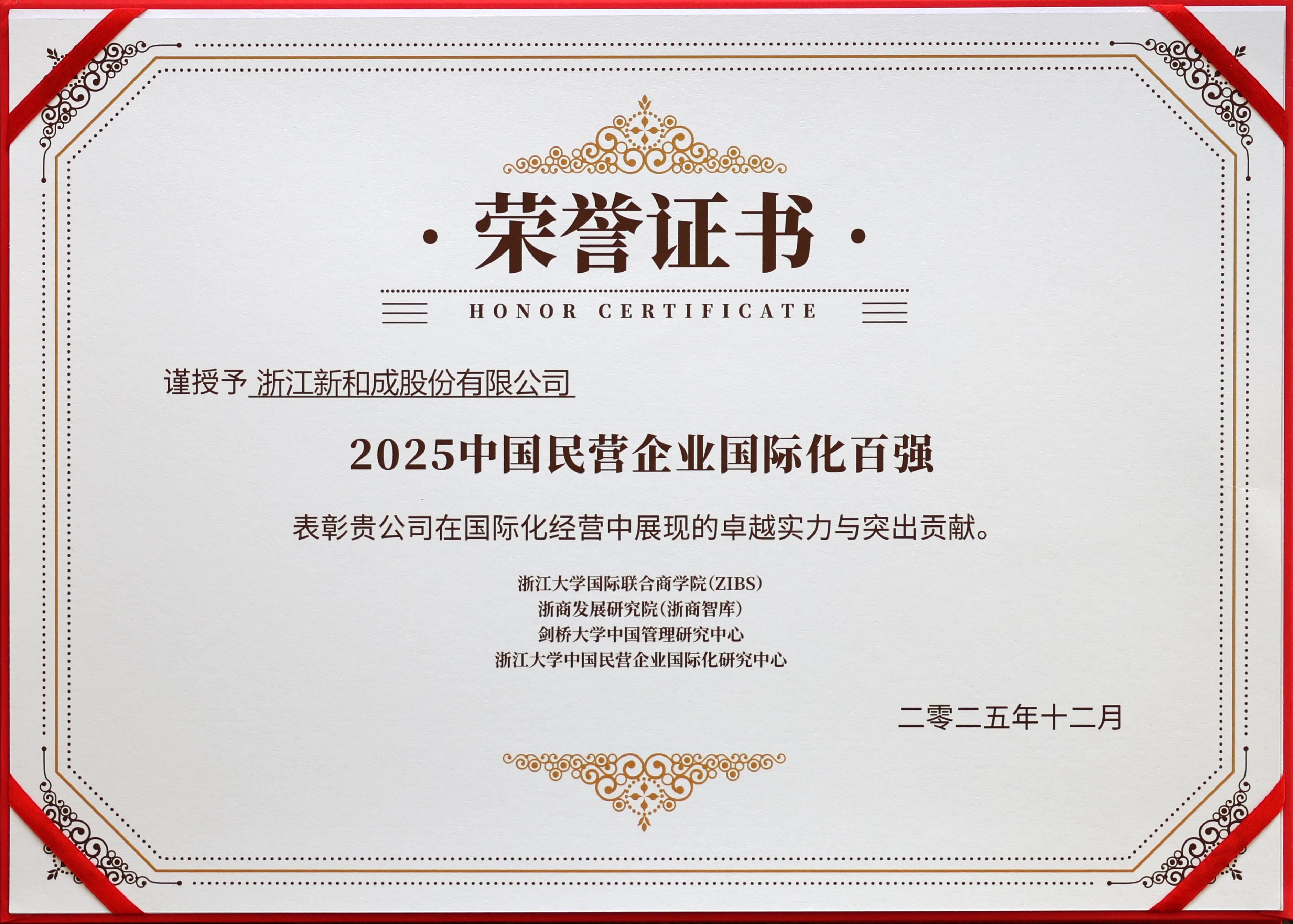 12月12日,“应变·共生·引领——中国民企国际化百强榜发布暨浙商智库‘十五五’全球战略对话”论坛在杭州顺利举办,ZIBS中国民营企业国际化研究中心(CCM)于活动中发布《2025中国民企国际化百强榜》。新和成凭借在全球市场的前瞻布局、持续创新的科研体系以及广泛的国际影响力,成功上榜。