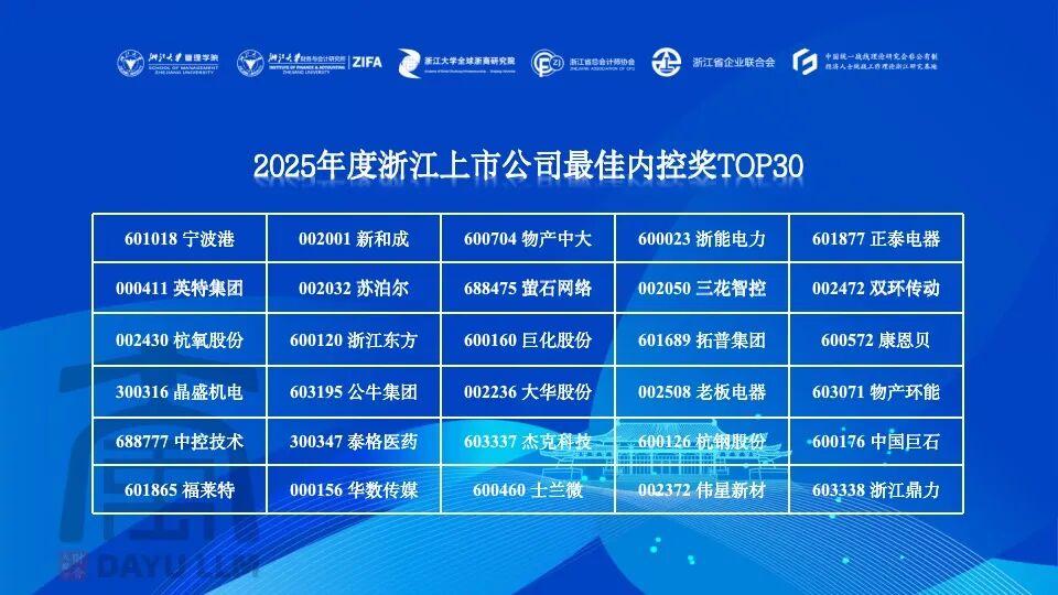 11月20日,第九届企业高质量发展与管理创新论坛在浙江大学举办,并揭晓2025年度浙江上市公司最佳内控奖TOP30,新和成再次上榜,连续9年获此殊荣。