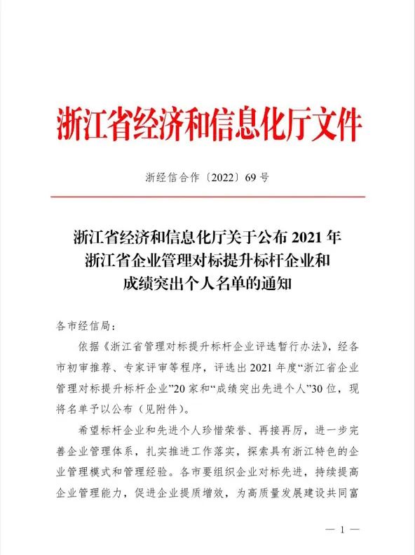 近日,浙江省经济和信息化厅公布2021年浙江省企业管理对标提升标杆企业和成绩突出个人名单。集团公司党委书记胡柏剡老师荣获“企业管理对标提升成绩突出个人”称号,这不仅是对胡柏剡老师在推进企业高质量发展方面做出突出贡献的嘉奖,也是对新和成发展成果的肯定。 助力高质量发展建设共同富裕示范区和打造全球先进制造业基地是公司的光荣使命和责任。在“老师文化”的引领下,公司始终秉承开放思想、对标学习的态度,坚持面向全球市场、整合全球资源,向优秀学习。公司与壳牌合作,引进先进的HSE管理体系,努力实现本质安全;在产业链上,与闰土、荷兰DSM、日本东洋纺合作等企业优势互补,合作共赢,提升创新链、价值链,聚焦聚力增强竞争力、高质量发展。 作为一家创新型企业,集团公司积极寻求管理创新之道,追求管理高效率,实现经济高效益。以目标为导向、问题为导向,公司每年开展管理创新课题申报、评比表彰工作,并践行反思文化,开展批评与自我批评,激发员工创新活力,解决管理中存在的主要问题和薄弱环节,不断加强管理体系和管理能力现代化建设,持续推动质量变革、效率变革、流程变革,为公司实现高质量发展、成为国际一流企业增添不竭动能。 管理提升是企业发展的永恒主题,是企业实现基业长青的重要保障。朝着“中国新和成,世界新和成”的愿景目标,公司将坚持对标世界一流企业,加强精益化管理,持续优化产业布局,在高质量发展中奏响共同富裕的强音。